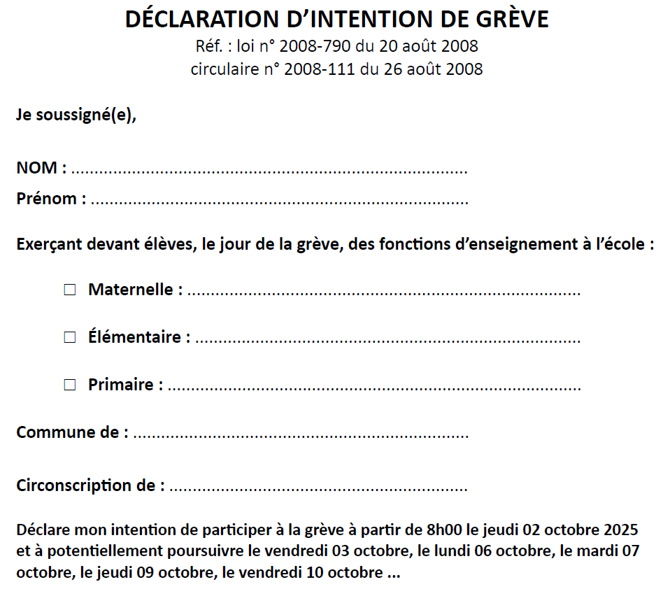 Déclaration d’intention de participer à la grève à partir de 8h00 le jeudi 02 septembre 2025 29 septembre 202529 septembre 2025 par admin4997, publié dans DECLARATION INTENTION, Non classé DECLARATION-INTENTION_grève à partir du JEUDI 02 OCT 2025 SNUDI FO 91Télécharger DECLARATION-INTENTION_grève à partir du JEUDI 02 OCT 2025 SNUDI FO 91Télécharger